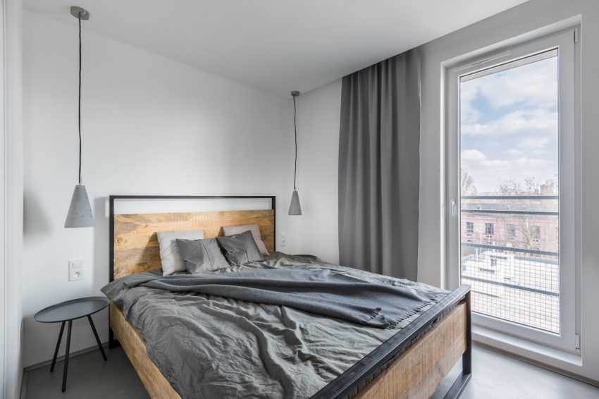 Современная спальня в стиле минимализма, в которой удалось сохранить натуральное дерево