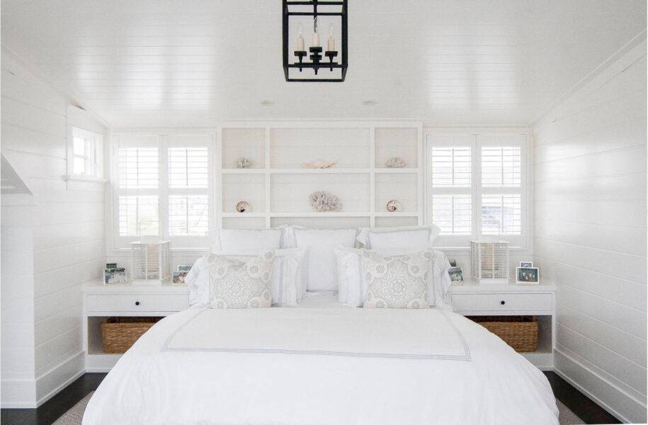 Для того, чтобы белая спальня стала уютной и комфортной, комнату декорируют текстилем из натурального хлопка, льна или шерсти. Придать интерьеру неповторимости и добавить в него ярких красок, можно при помощи контрастных подушек, пледов или покрывал.