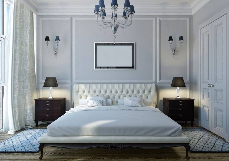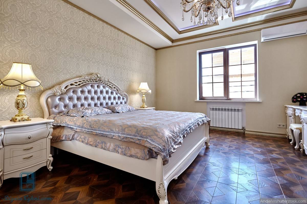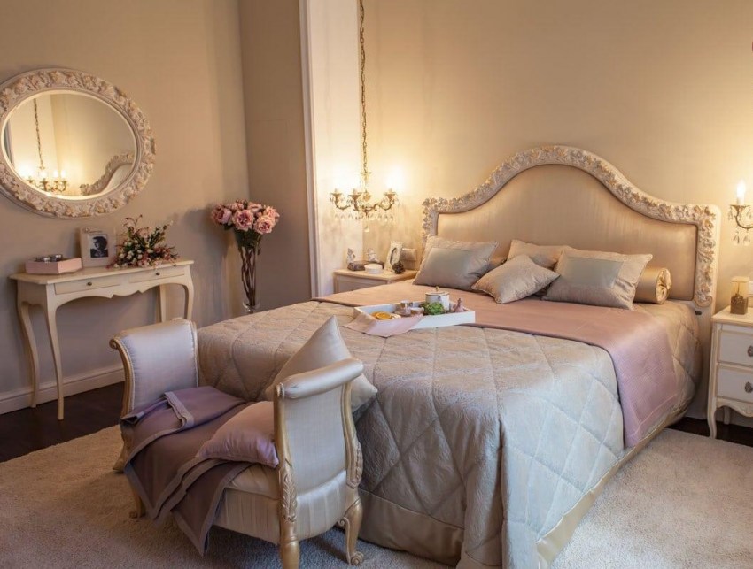 Несколько сценариев освещения. Это правило продиктовано самой историей. В те давние времена не было электричества, поэтому источники освещения предусматривались для разных зон комнаты. Поэтому в классической спальне обязательны дополнительные настенные и напольные светильники. А центральная потолочная люстра свяжет весь дизайн в единое целое.