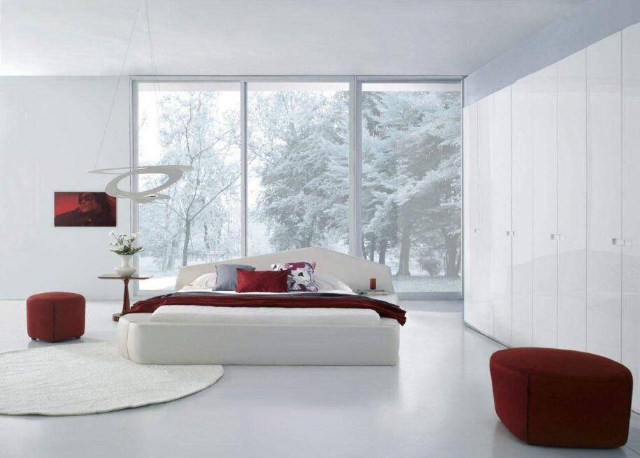 Холодный белый интерьер можно «согреть» теплыми цветовыми акцентами в виде аксессуаров, текстиля и ковриков из натурального меха. Имея хороший вкус и фантазию, можно почти «безоттеночный» цвет обыграть так, что привычная спальня заиграет новыми красками. Хорошие примеры – фото белой спальни в разной стилистике.