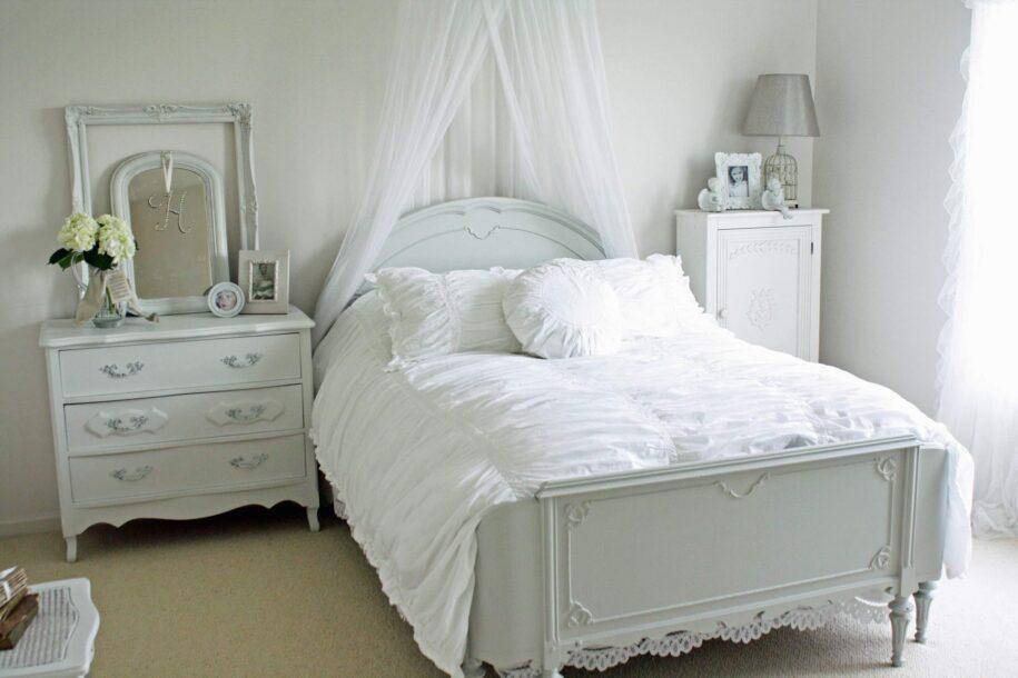 - для отделки покрывала может использоваться белая тесьма или складки, но при отделке других элементов интерьера, этот нюанс должен учитываться;