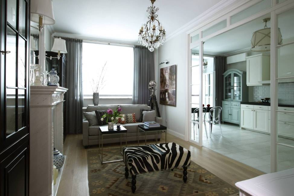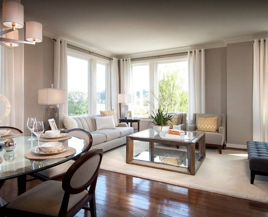 Если вам нужны , то белый цвет именно для вас. Этот цвет визуально приподнимет потолки и расширит помещение. На фото вы можете увидеть оформление интерьера зала небольших размеров.