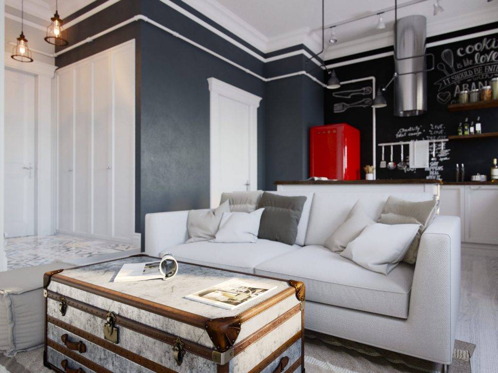 Важный момент при обустройстве небольшой квартиры – создать максимально функциональное, но в то же время комфортное и эстетичное место. Основой для такой расстановки должна стать компактная мебель, выполняющая одновременно множество функций. Стоит отказаться от большой кровати в пользу раскладывающегося дивана, который днем будет выполнять роль удобного кресла.