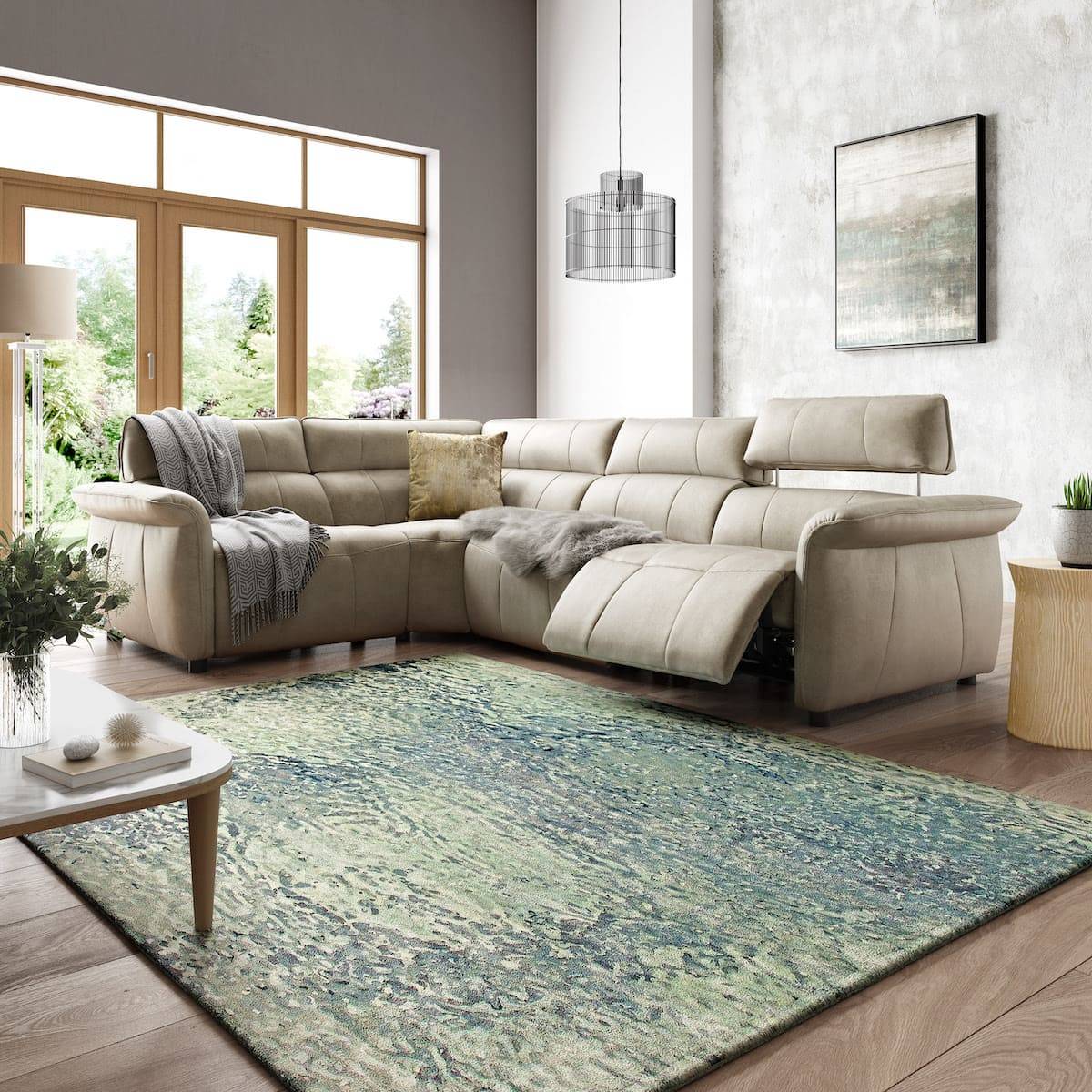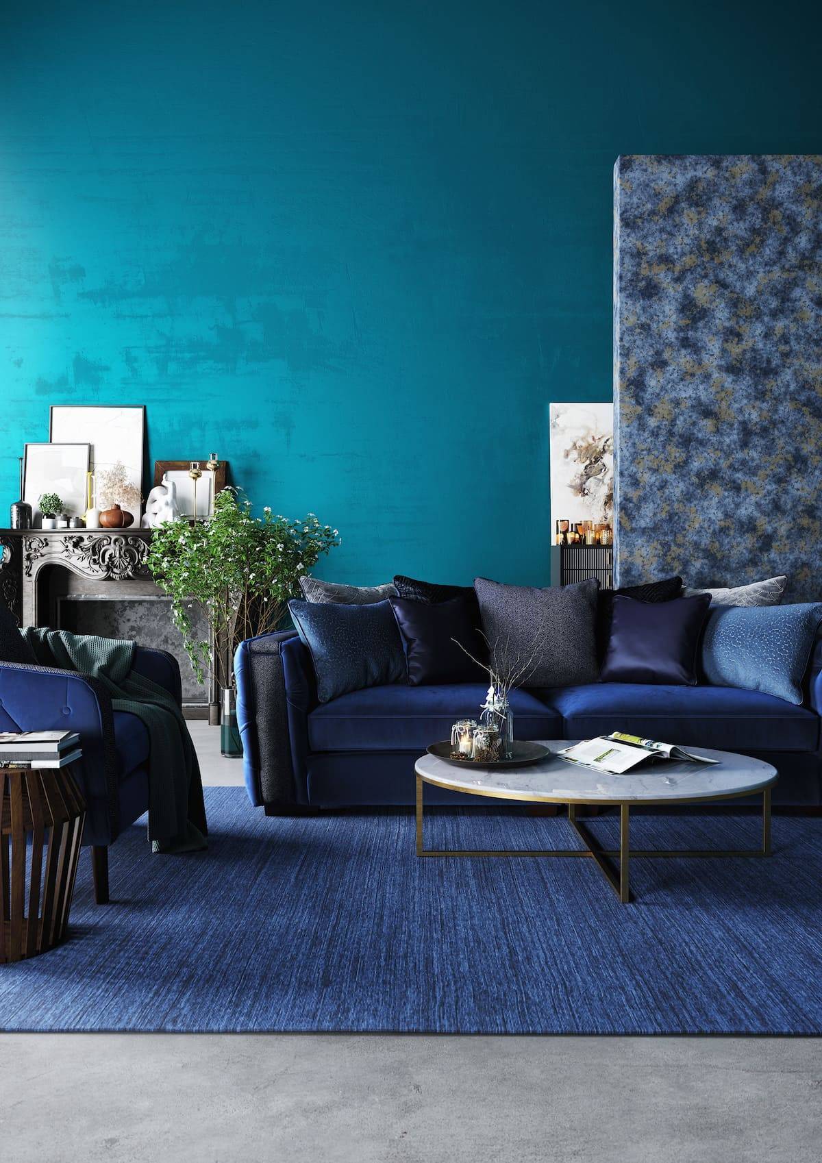Сложная геометрия ковра, в котором чередуются треугольники разных цветов, неизбежно притягивает к себе внимание, становясь центром всей интерьерной композиции