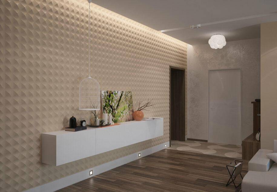 Стены прихожей с такой отделкой могут быть оформлены в любом стиле. Установка простая, понятная, не требует выравнивания или серьезной подготовки поверхности.