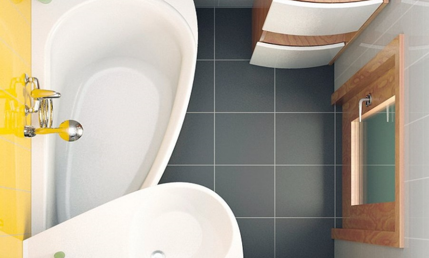Если площадь помещения небольшая, то вместо габаритной ванны желательнее монтировать в нем душевую кабину. Она займет меньше пространства, но при этом отлично будет справляться со своей функцией. Особенно актуальны для таких помещений угловые типы душевых кабин. Если же вы все-таки решили установить ванну, то можно ее разместить у стены напротив входа, а остальные элементы вмонтировать по одной боковой стороне. В этом случае необходимость разводить в разные стороны коммуникации исчезает. Кроме того, есть модели угловых ванн, которые в какой-то степени экономят пространство и делают помещение эргономичным.