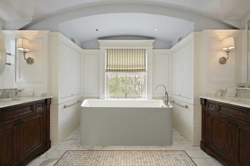 Большая ванная даёт вам полную свободу действий в выборе стиля. Это может быть классический интерьер, в котором чётко прослеживается последовательность использования цветов и материалов.