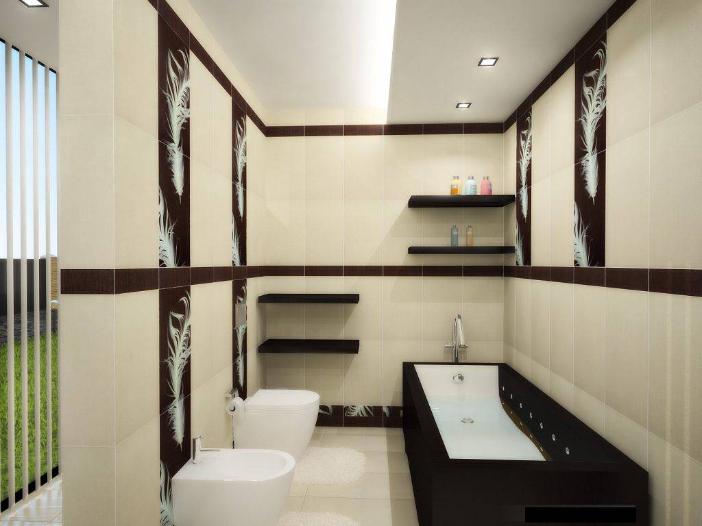 Если будете использовать керамическую плитку для отделки стен, то рекомендуется сделать несколько зон с разной плиткой. Помещения, выполненные в одном стиле, выглядят бедновато, а использование плиток с различным рисунком позволит обойти этот недостаток.
