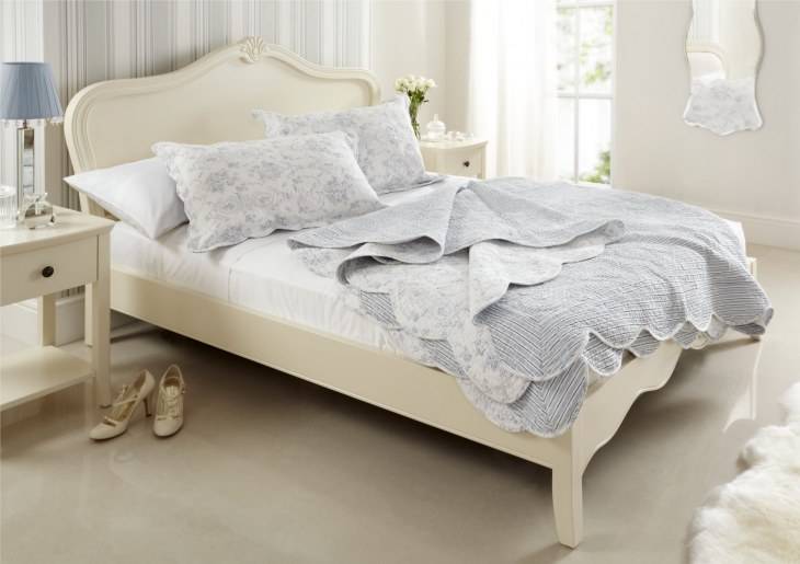 Главное требование — кровать должна быть массивной с кучей подушек разной формы, покрывалами и тёплыми пледами, тогда и будет достигнут нужный нам эффект в рамках данного стиля.