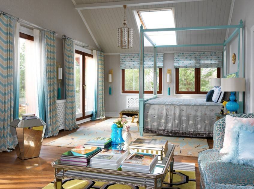 На пол можно положить симпатичный коврик, а окна оформить при помощи лёгких и воздушных занавесок.