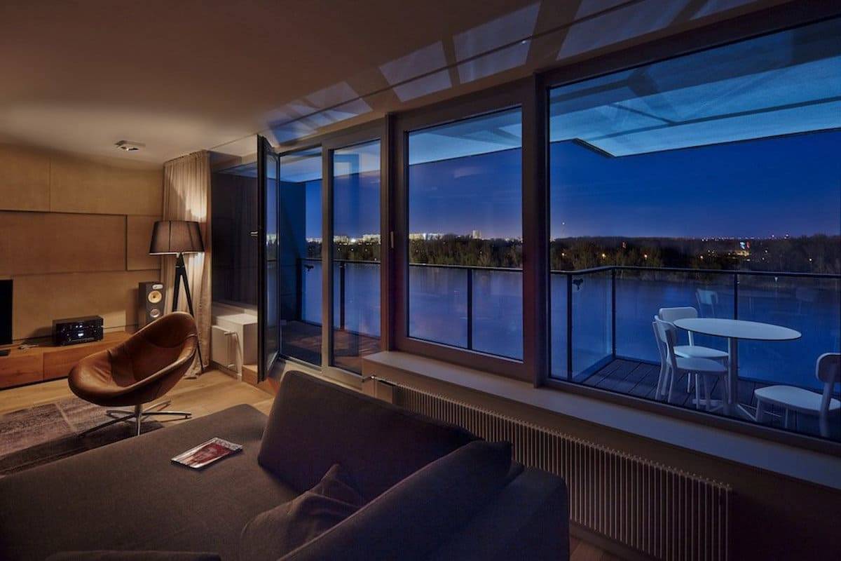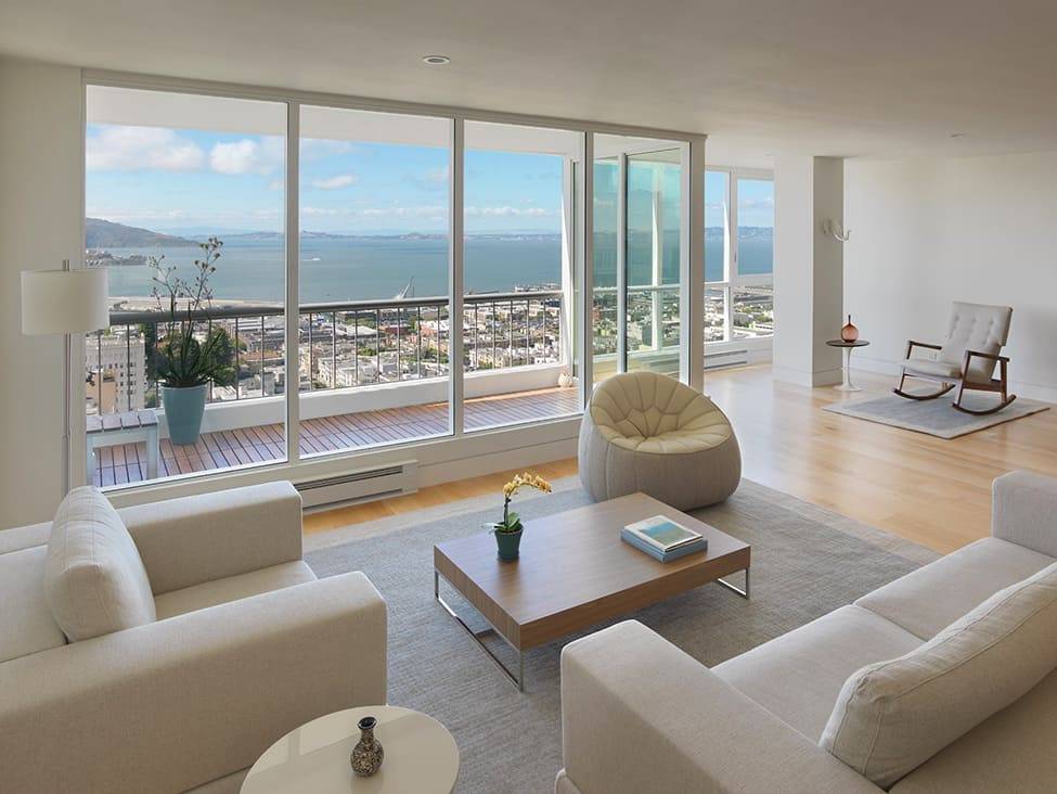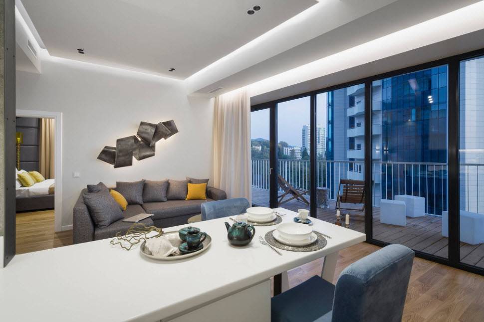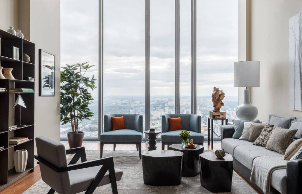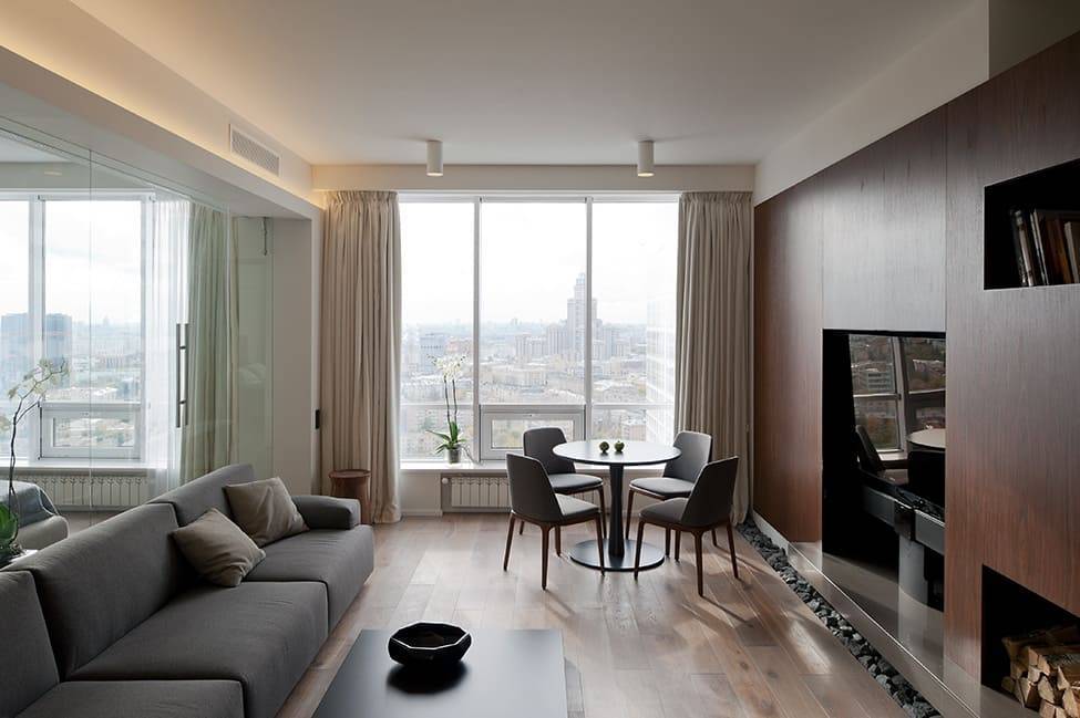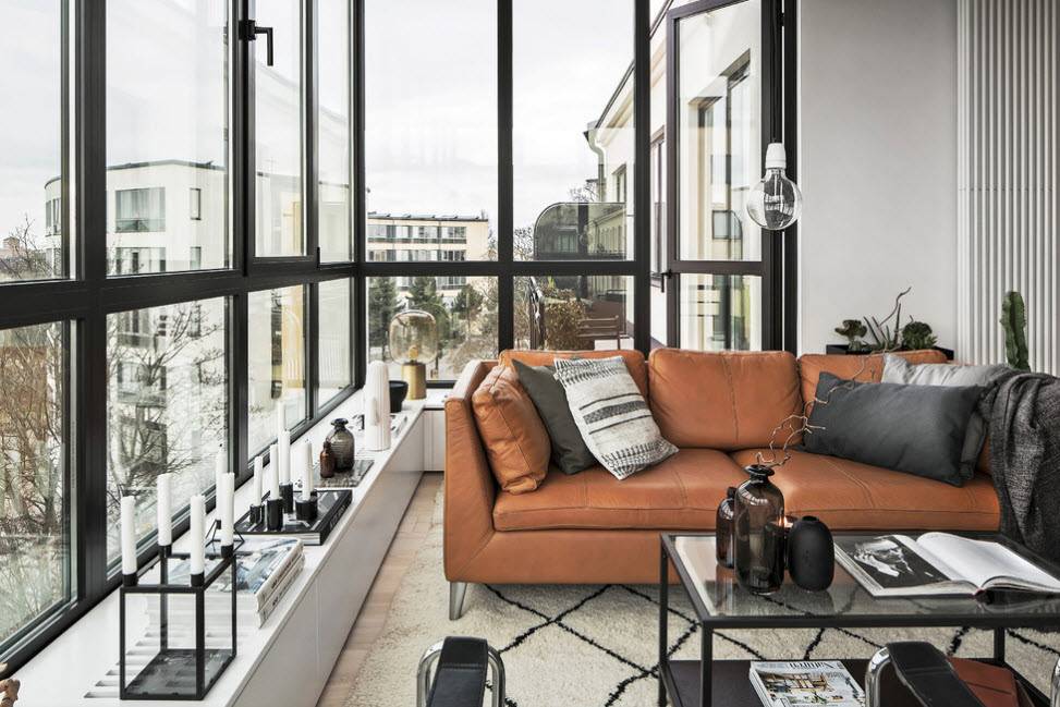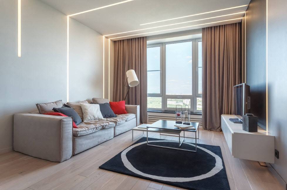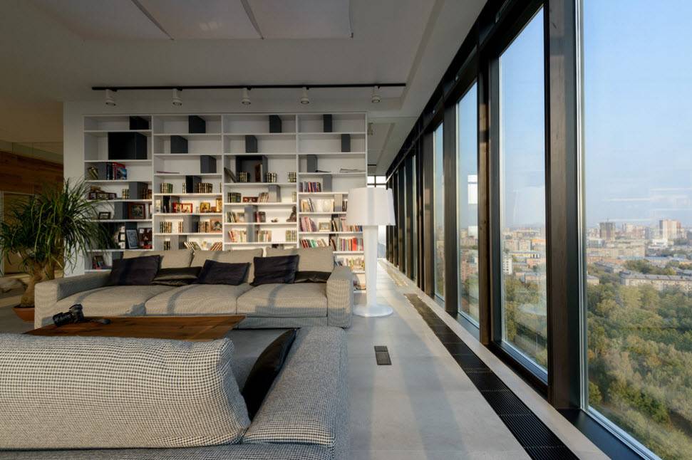 Панорамные окна визуально расширяют пространство, а использование светлых тонов в оформлении интерьера усиливает этот эффект. Среди плюсов панорамного остекления значительное улучшение естественной освещенности. Это не только повышает комфорт во время работы и отдыха (ведь человеческий глаз по своей природе лучше воспринимает именно солнечный свет), но и помогает экономить на электроэнергии.