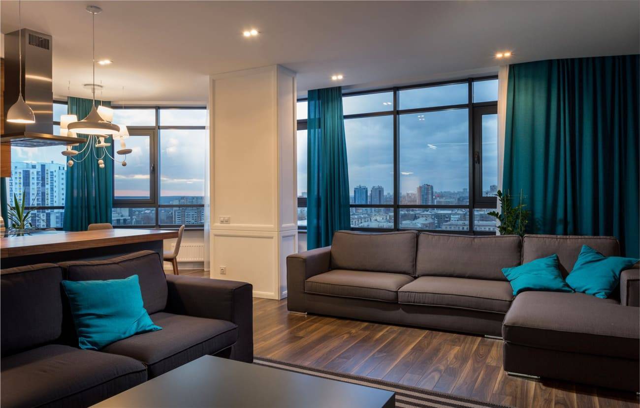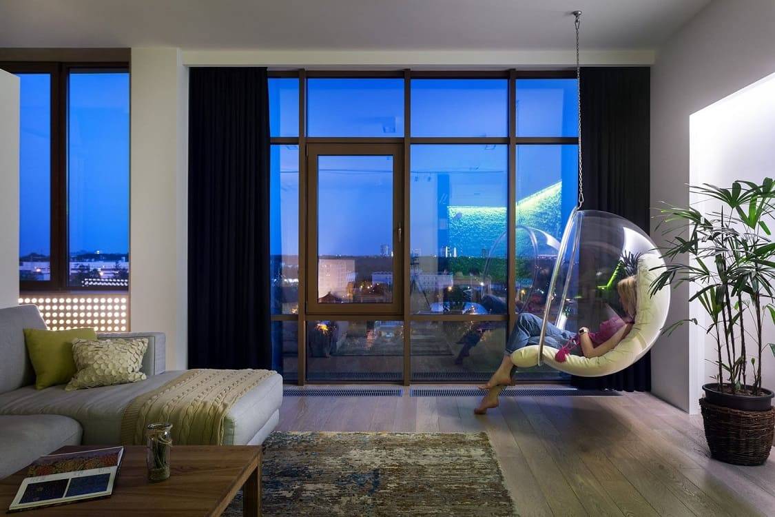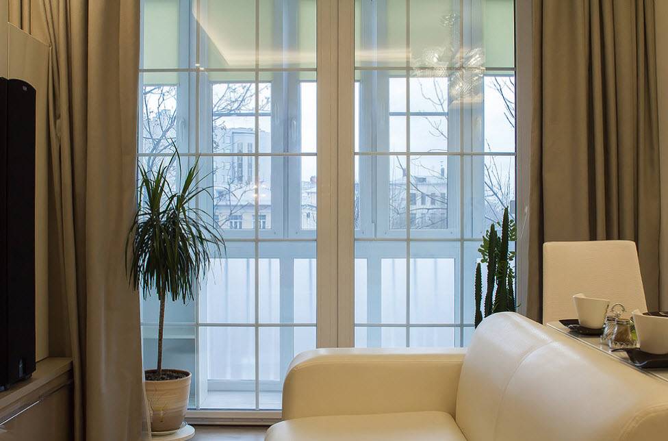 Ведь в квартире с такими окнами, даже на высоком этаже, неизбежно видна часть интерьера, что может привлечь нежелательное внимание посторонних (к примеру, воров), а значит, возникает необходимость продумать дополнительные меры безопасности и охраны жилья