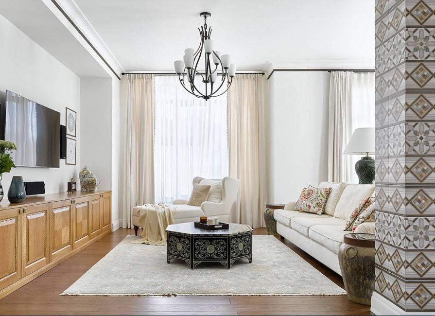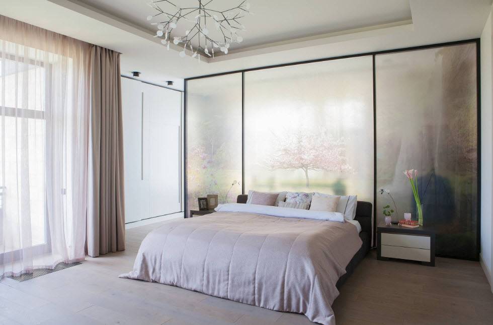 - восточные интерьеры тоже часто дополняют витражами, например, в японском стиле могут использоваться мобильные ширмы из стекла и узоры в виде сакуры, бамбука или священной горы.