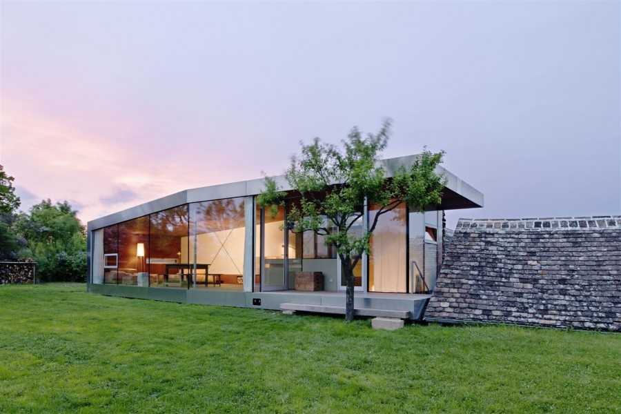 Придать ему визуальную легкость можно панорамным остеклением, как на фото.