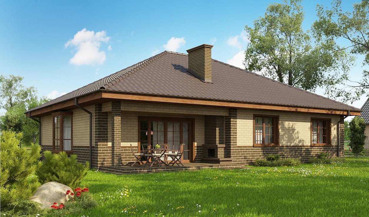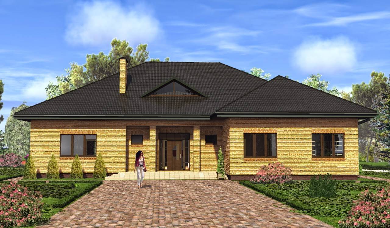 Красивые одноэтажные дома из кирпича по праву считаются универсальными, так как возводить их можно на любом грунте.