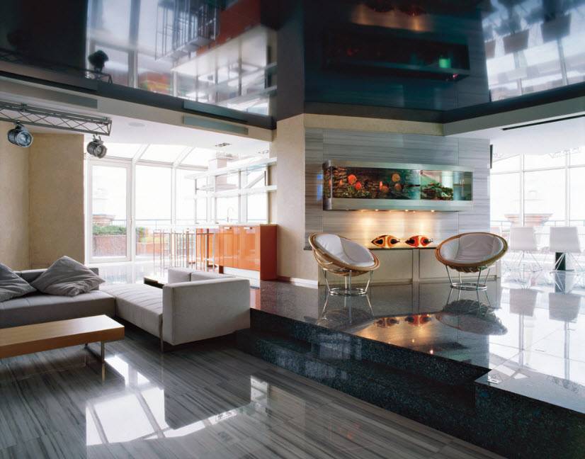 ВНИМАНИЕ: блестящие поверхности зрительно увеличивают пространство. Стиль хай-тек запрещает использование:
