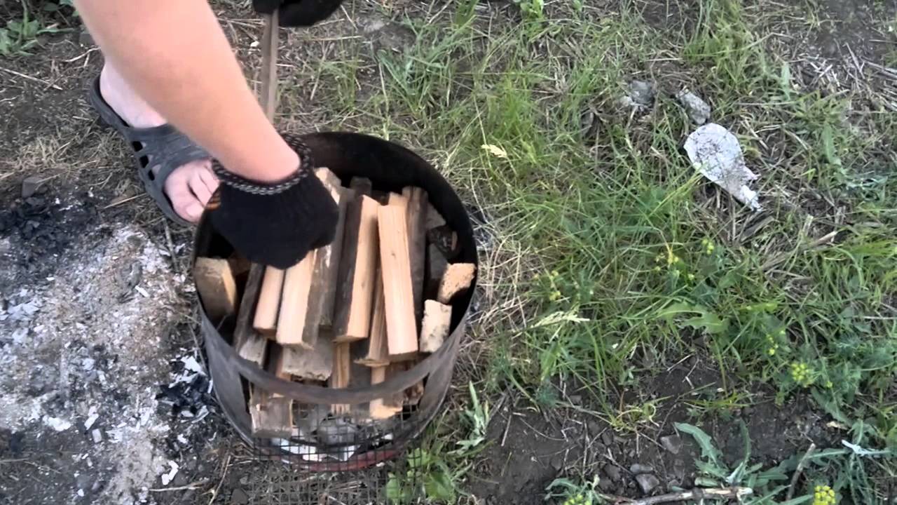 Подготовленная бочка помещается на подставку, для удобства проделываются углубления или яма для топки и розжига. Дым образуется естественным образом.