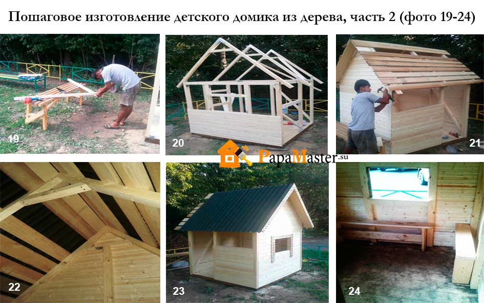 Фото 19-24 — Пошаговое изготовление детского домика из дерева, часть 2