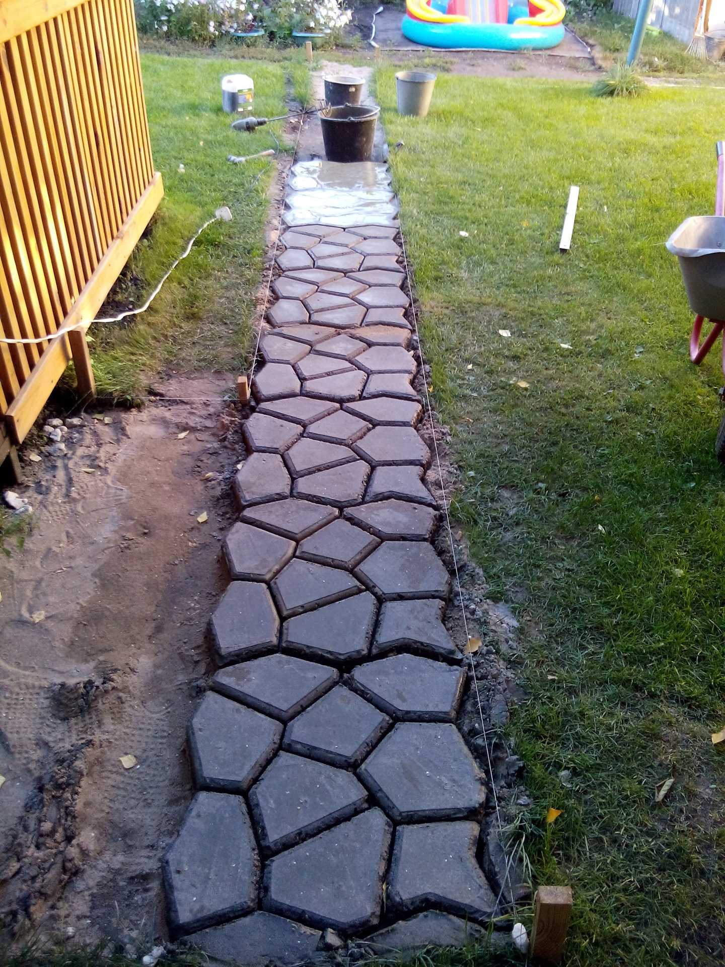 С помощью таких нехитрых манипуляций можно сделать аккуратную дорожку в саду или на даче.