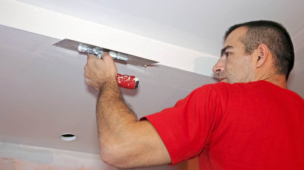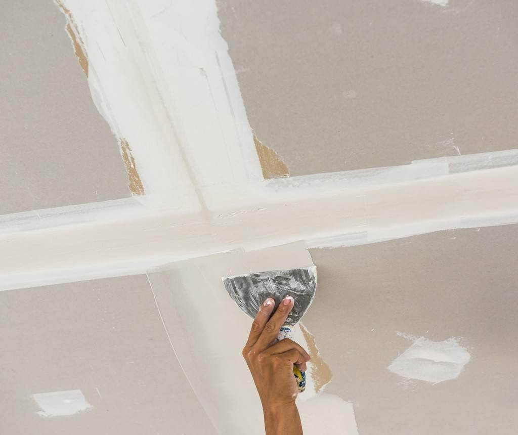 Все работы делятся на этапы – разметка потолка, формирование каркаса, обшивка, финишная заделка. Перед началом процесса базовая поверхность очищается, выравнивается штукатуркой. Если межплитные швы разошлись, их можно запенить, а после высыхания пены срезать излишки. Трещины армировать серпянкой и заделать штукатуркой. После заделки плоскость обеспылить, прогрунтовать в 2-3 слоя, давая просохнуть слою перед нанесением следующего.