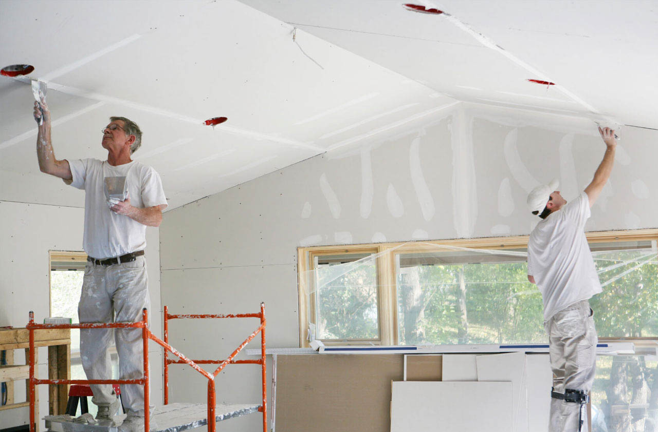 Обшивание листами – этап, после которого доступ к основному потолку будет затруднен, поэтому при необходимости в пространство укладываются теплоизоляционные материалы, гидроизоляция, заделываются обнаруженные дефекты базового основания и прочие мелочи.