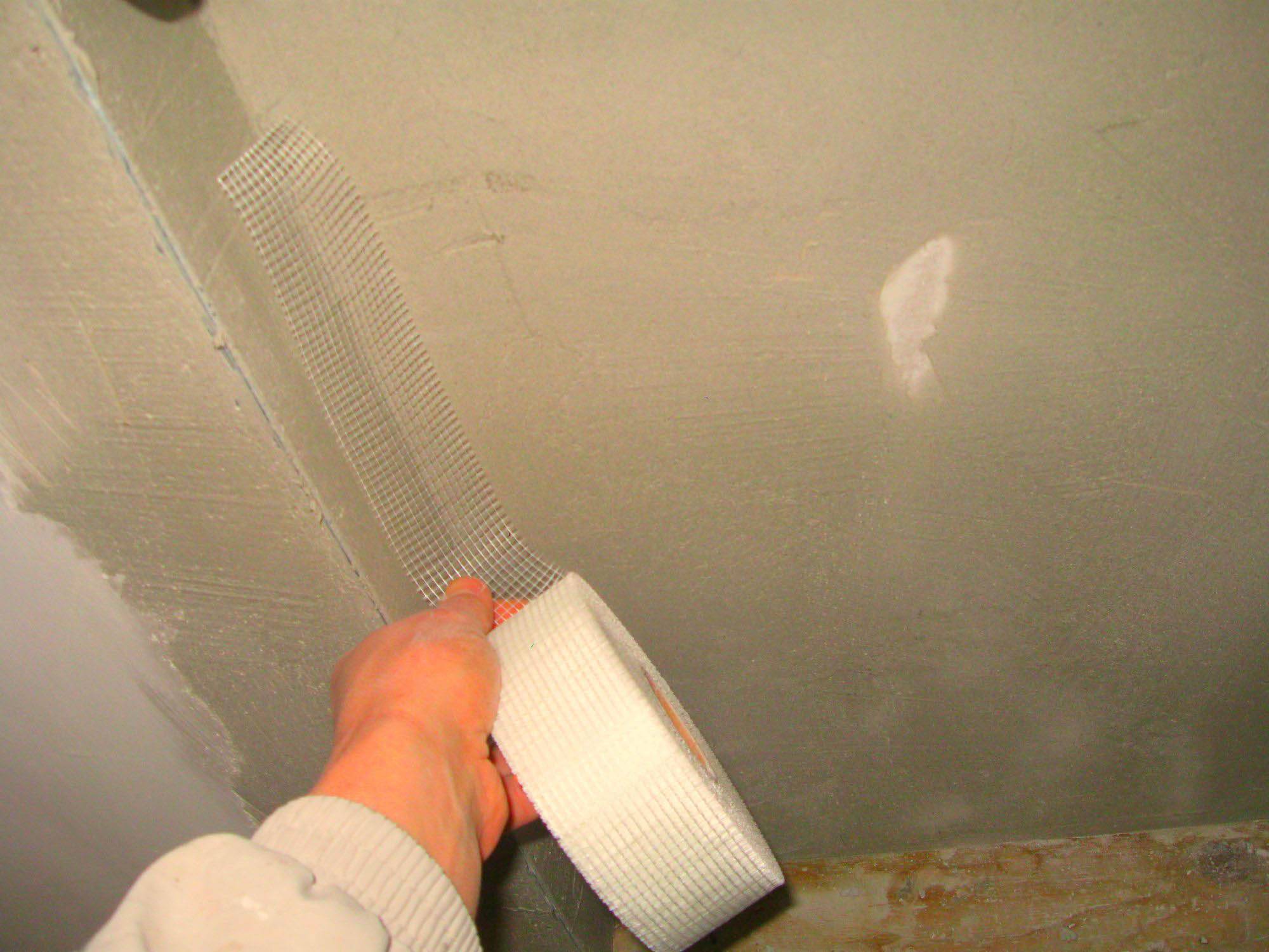 Для работы пригодится серпянка, грунтовка, шпатели, шпаклевка, валики и кисти. Сначала поверхность конструкции обеспылить, затем заделать швы. Лента-серпянка с клеевым основанием выкладывается на шов, чтобы он проходил точно посередине ленты. Затем заделка шпаклевкой и выравнивание. Лента без клеевого слоя выкладывается на тонкий слой шпаклевки, немного вдавливается и сверху снова покрывается сырым составом – затем шпаклевку выровнять.
