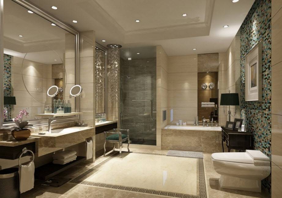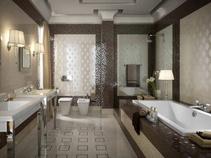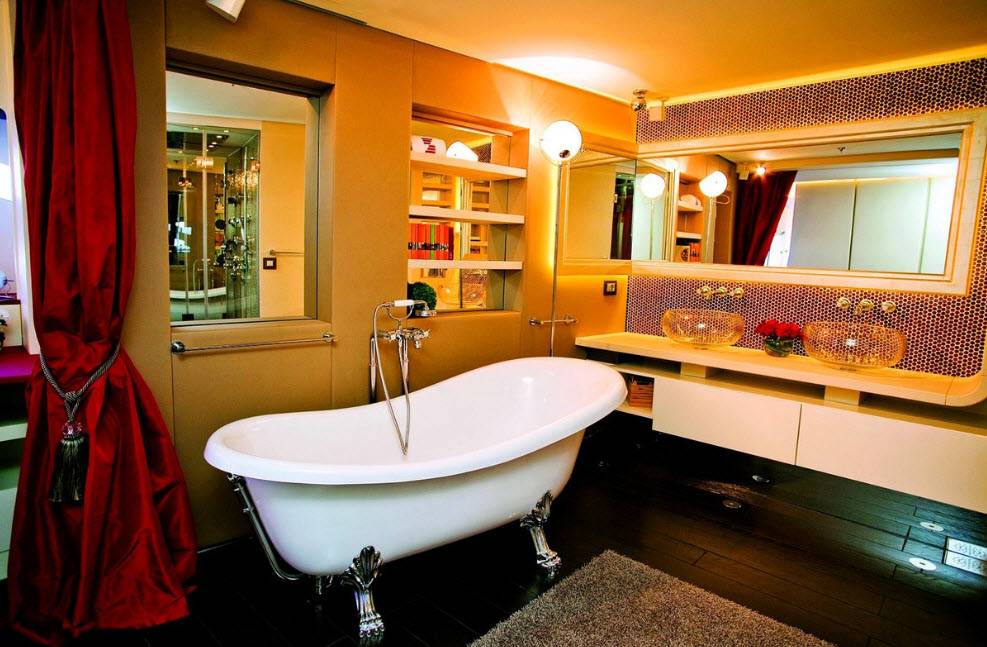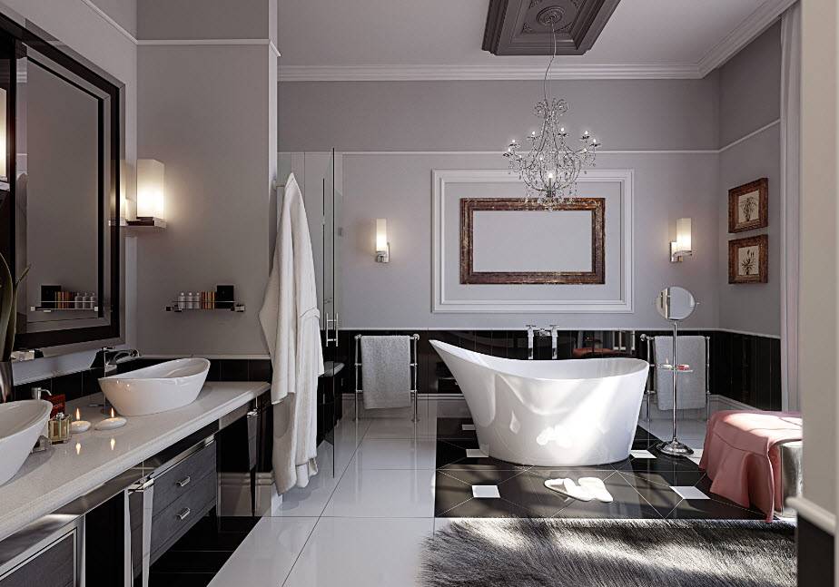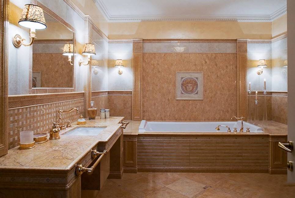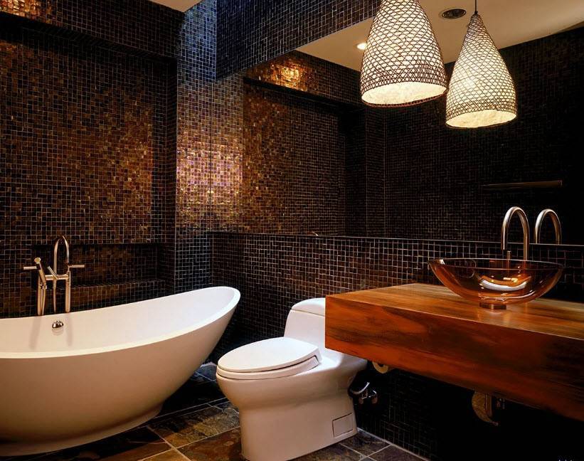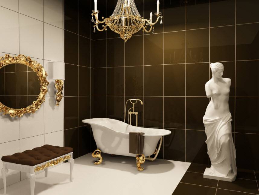 Если все-таки вы принял решение создавать настоящий элитный дизайн в ванной, то использовать один только кафель в отделке не выйдет.