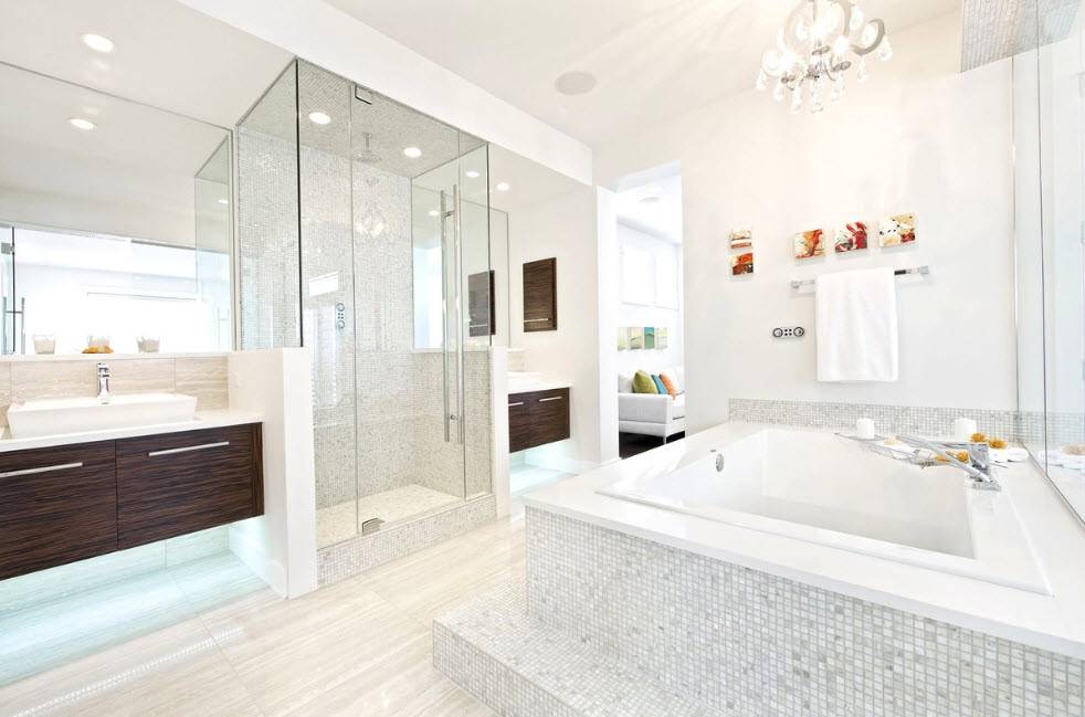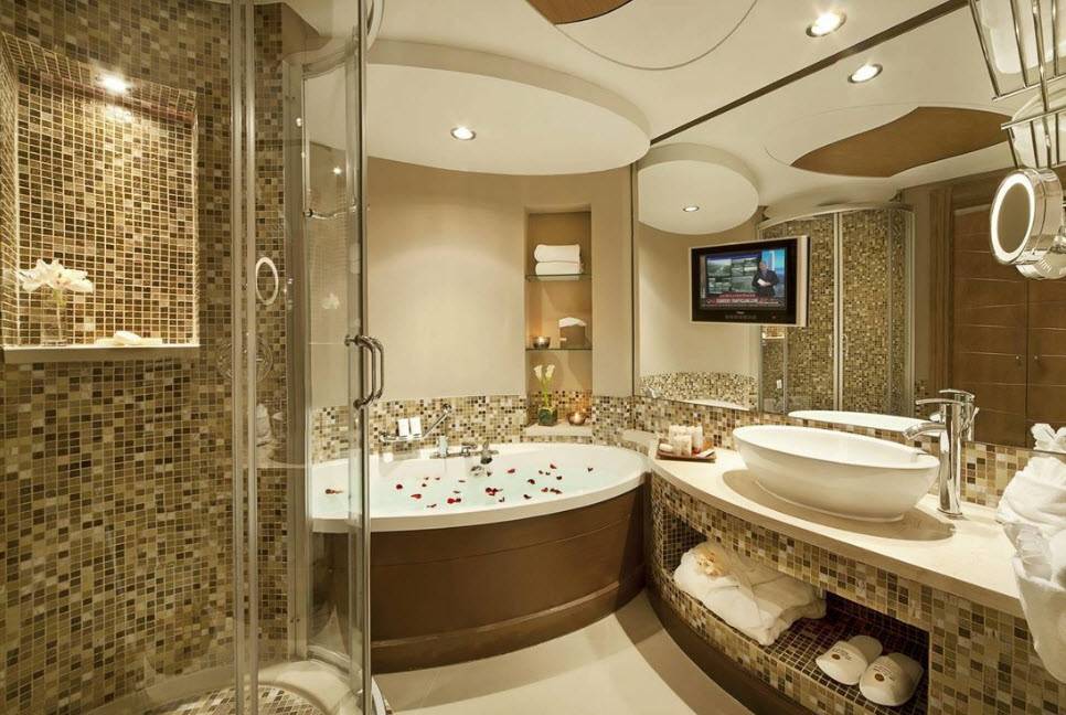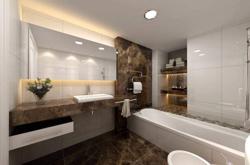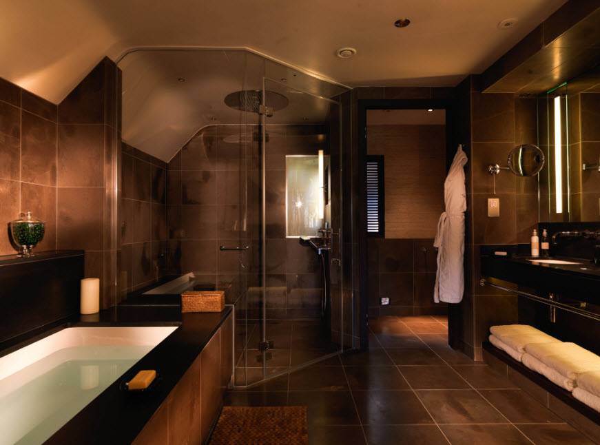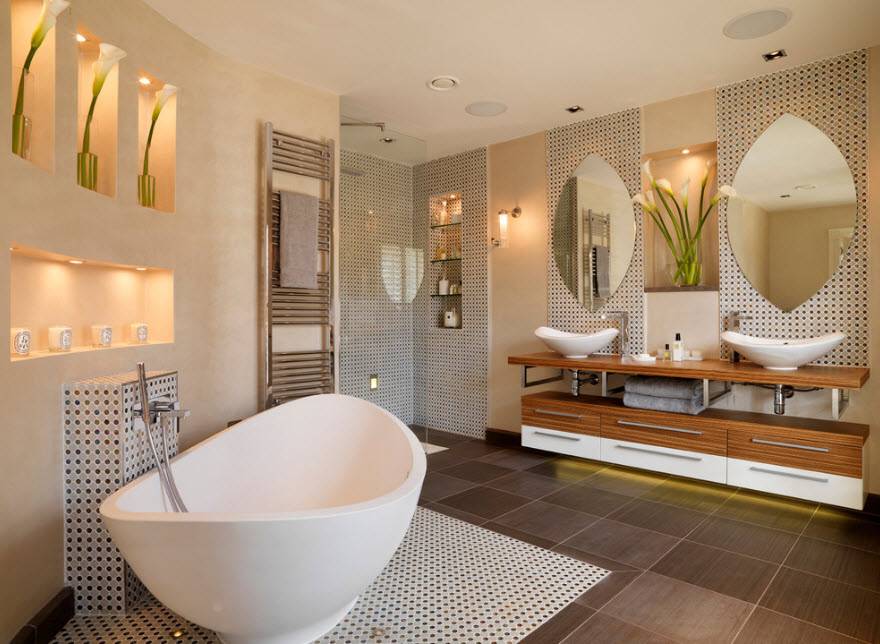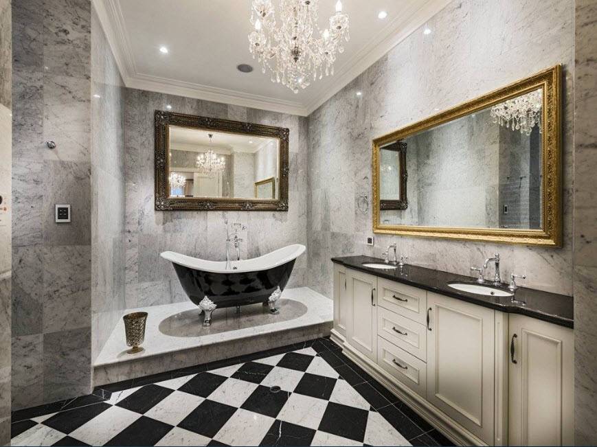 Если все-таки вы принял решение создавать настоящий элитный дизайн в ванной, то использовать один только кафель в отделке не выйдет.