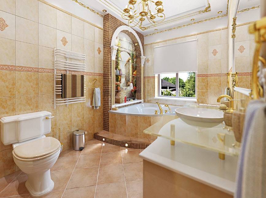 Либо же использовать ее для подиума под ванную. Или же использовать элитную плитку для ванной с разной цветовой гаммой.
