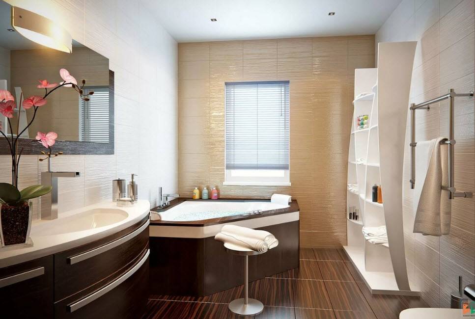 Ни для кого не секрет, что главный критерий при выборе плитки – это размеры помещения. Исходя из площади ванной комнаты, выбирается не только размер плитки, но и ее цветовая гамма. Если ванная маленькая, то и плитка должна быть соответствующих размеров, а вот в просторной комнате лучше отдать предпочтение большой квадратной или прямоугольной плитке. Что касается цветовой гаммы, то она зависит от стиля интерьера и общей концепции, что будет применена при оформлении и декорировании ванной комнаты. Мебель подбирают в тон плитке или же наоборот очень контрастной по отношению к отделочному материалу.