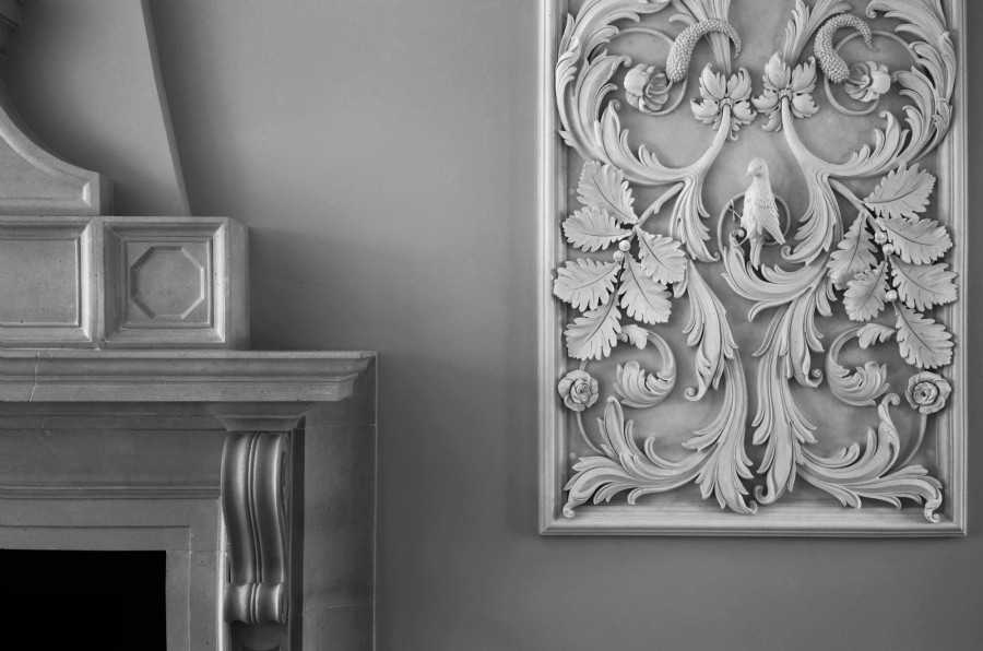 Можно найти причудливые гипсовые статуэтки и установить их на плинтуса под потолком или украсить лепниной прикроватную тумбочку.
