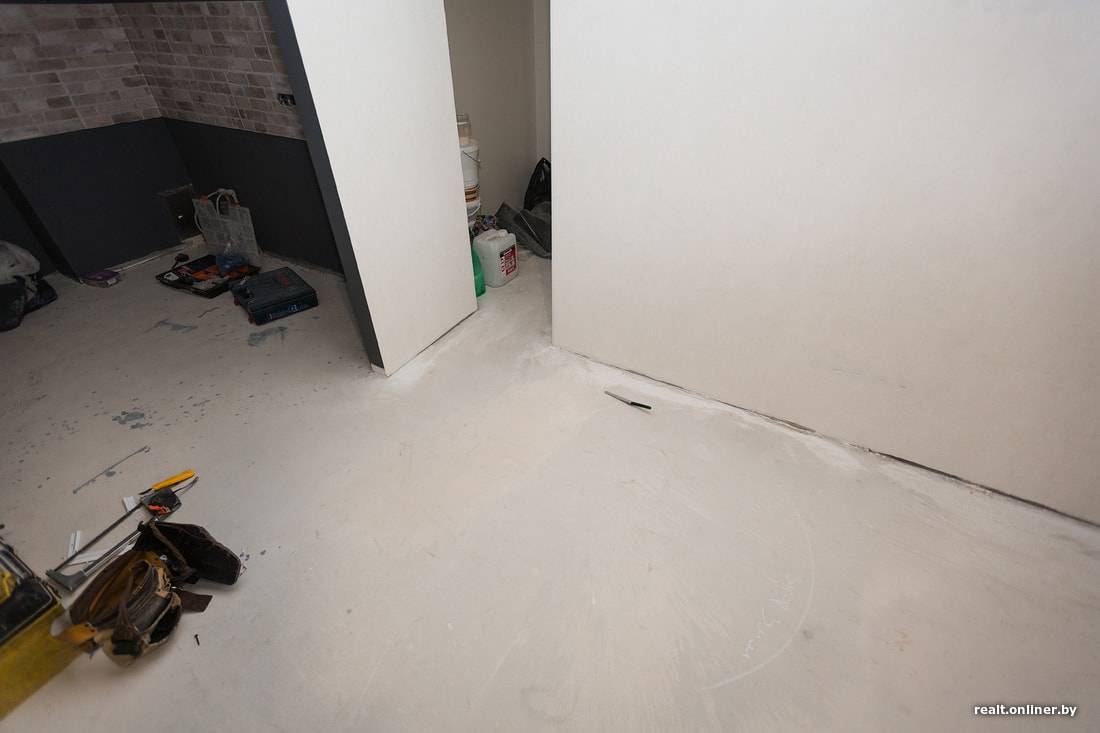 — По проекту во всей квартире будет уложен клеевой кварцвинил толщиной миллиметра 2,— объясняет Андрей. —Материал уже закуплен, и укладчики приходили примеряться. Они сказали, что пол кривой и что на такое основание они ничего приклеивать не будут. Вот так.