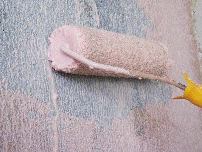 - Готовый состав наносят губкой или малярным валиком на ровную стенку. Рекомендуется применять малярные ленты, чтобы не вымазать другие поверхности.