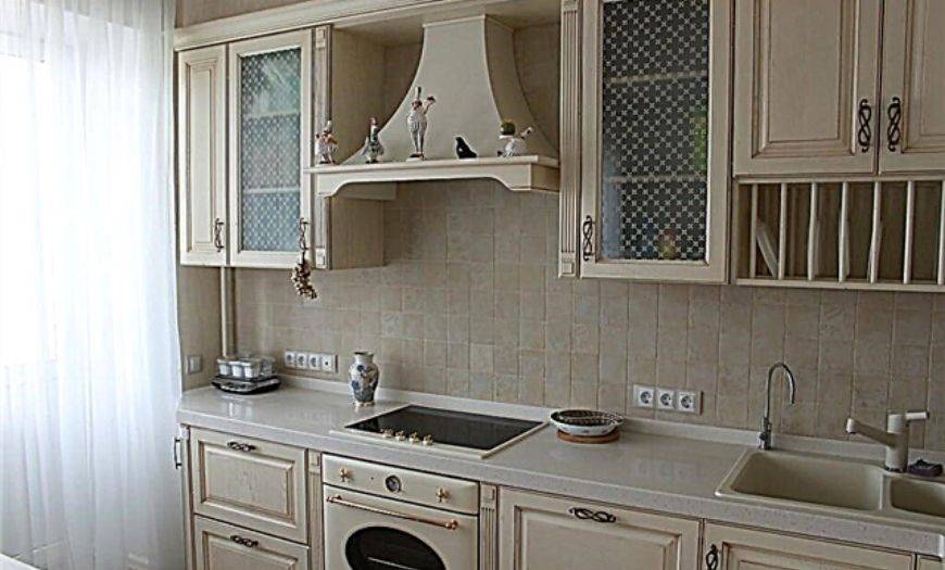 Кухонная плитка с большим количеством элементов понравится любителям ретро. Материал использовался хороший, поэтому небольшие повреждения и воздействие бытовой химии он выдержит без особых проблем. Подойдет для облицовки кухонного фартука и ванной комнаты, что также добавляет ему преимущества. Гармонично смотрится вместе с некоторыми современными решениями.