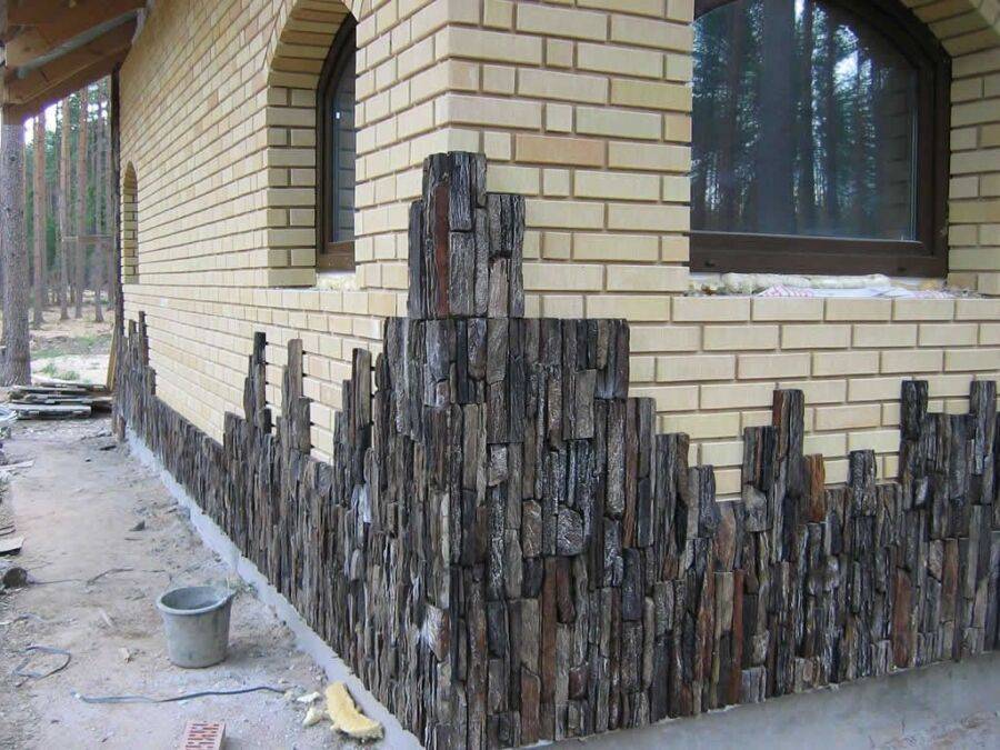 Некоторые специалисты для оформления угловых элементов здания используют строительный фен. Плитку фиксируют в нагретом состоянии или на прогретое основание, что упрощает монтаж. Также снижается риск растрескивания и осыпания декоративного базальтового покрытия.