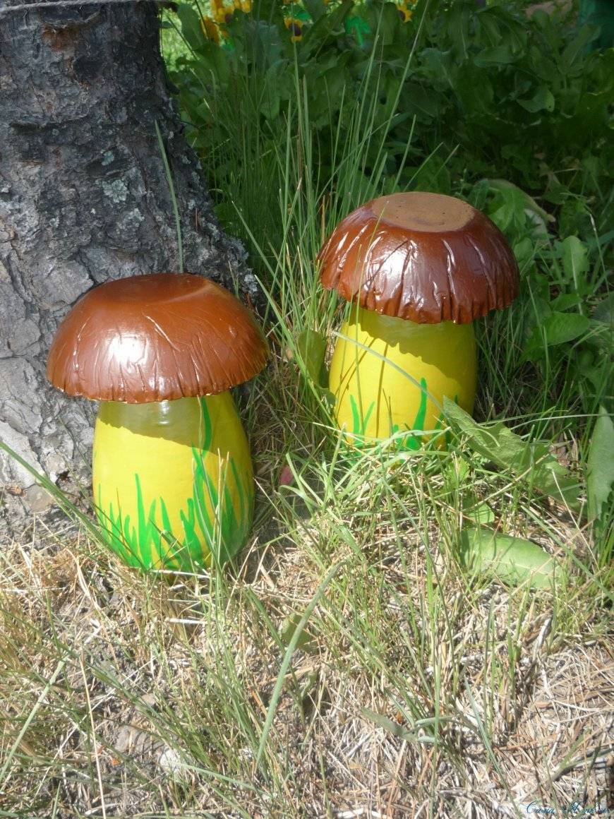 Распространённым украшением для сада является поделка в форме гриба. Рекомендуется начать творчество именно с данной фигуры, так как она является одной из самых простых.