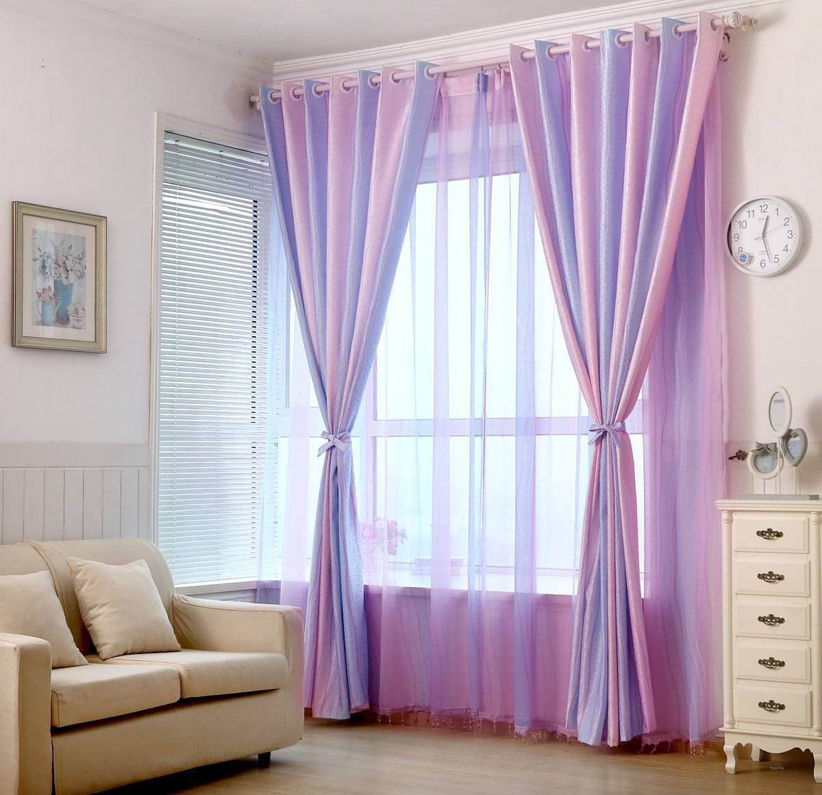Допустим, фиолетовые шторы в спальню должны быть тяжелыми, тогда комната будет выглядеть роскошно. А для детской подойдет легкий материал и соответственно светлые оттенки фиолетового.