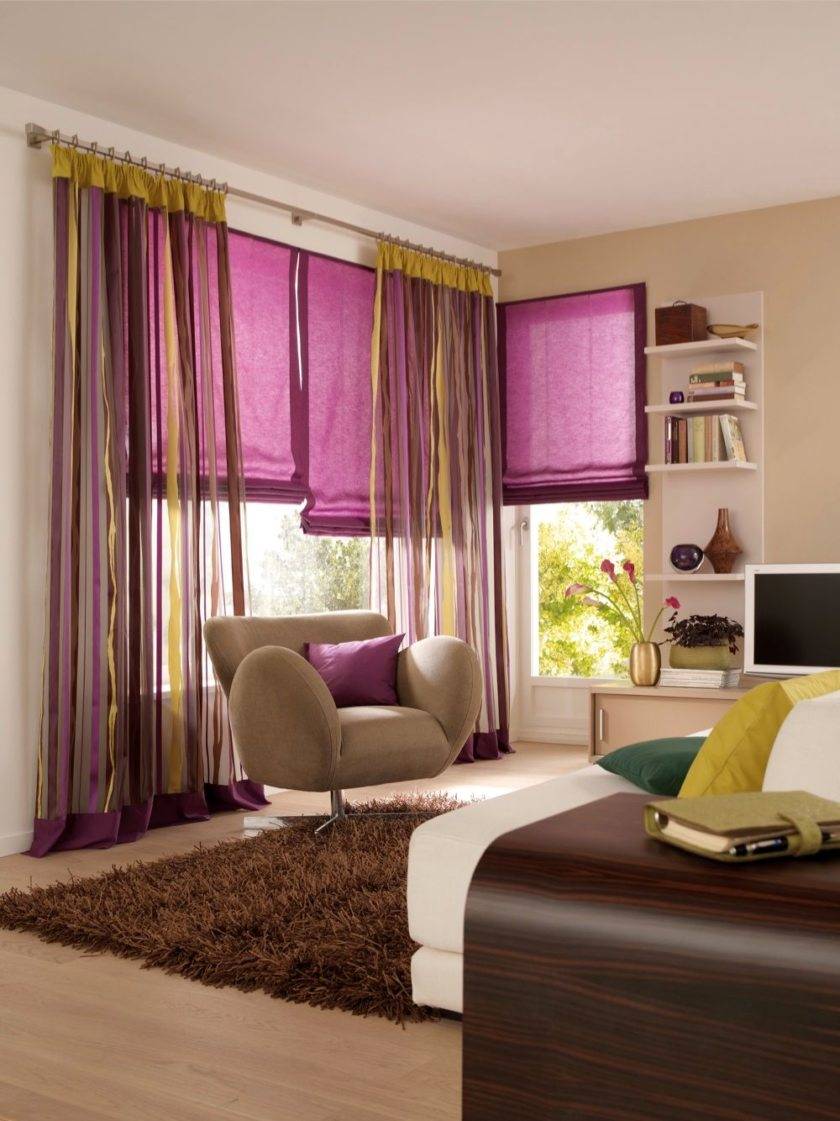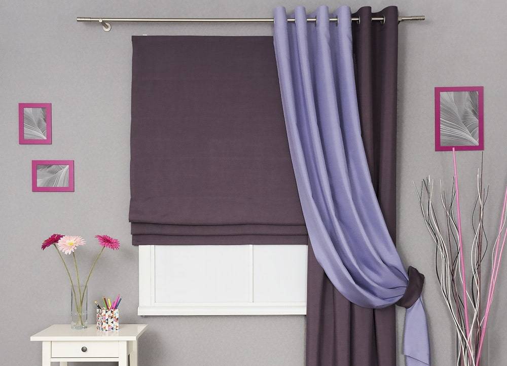 При комбинировании главное не забывать о назначении штор – защищать помещение от света, не пропускать солнечные лучи. С этой задачей фиолетовый отлично справляется.