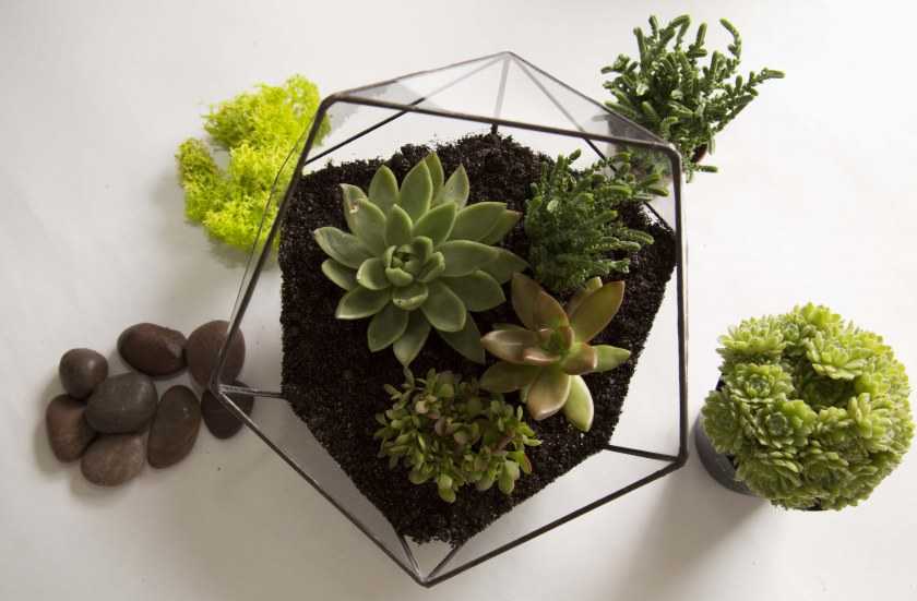 Этот флорариум будет моделировать пустыню. В нем отлично растут суккуленты, к которым относятся: