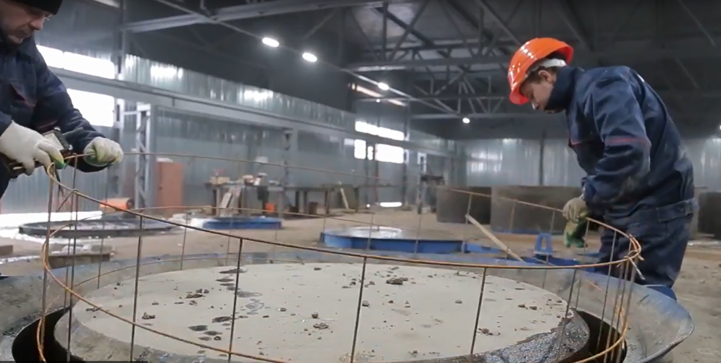 Пропаривание колодезных колец после формования — достаточно важный этап производства железобетонной продукции. Суть ее заключается в том, что при повышении температуры, скорость гидратации вяжущих веществ увеличивается. Изделие быстрее набирает распалубочную прочность, по достижению которой возможно его снятие с поддона и безопасное транспортирование к месту хранения. Пропаренные жб изделия получаются прочнее, чем изделия, не прошедшие тепло-влажностную обработку (ТВО).