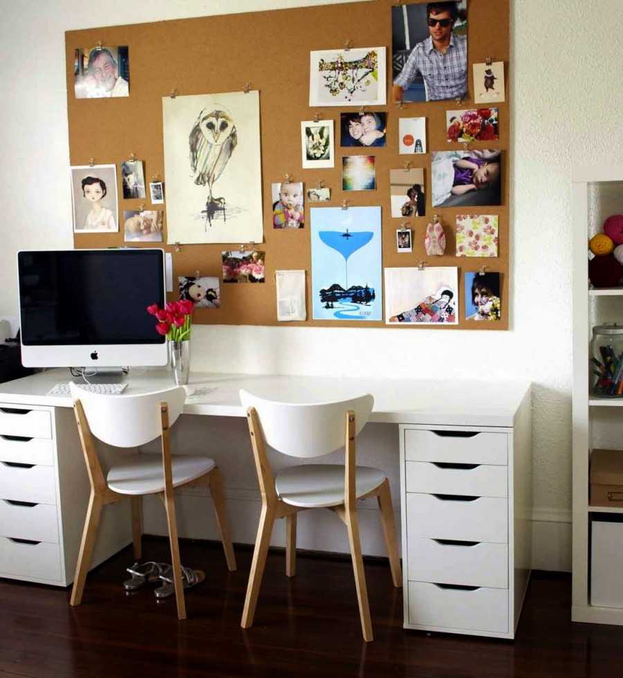 Пробковая доска. Этот вариант в последнее время весьма популярен. Основное преимущество — фотографии можно менять. Идеальным местом станет детская комната или кухня. Пробковую доску можно интересно обыграть в интерьере комнаты.