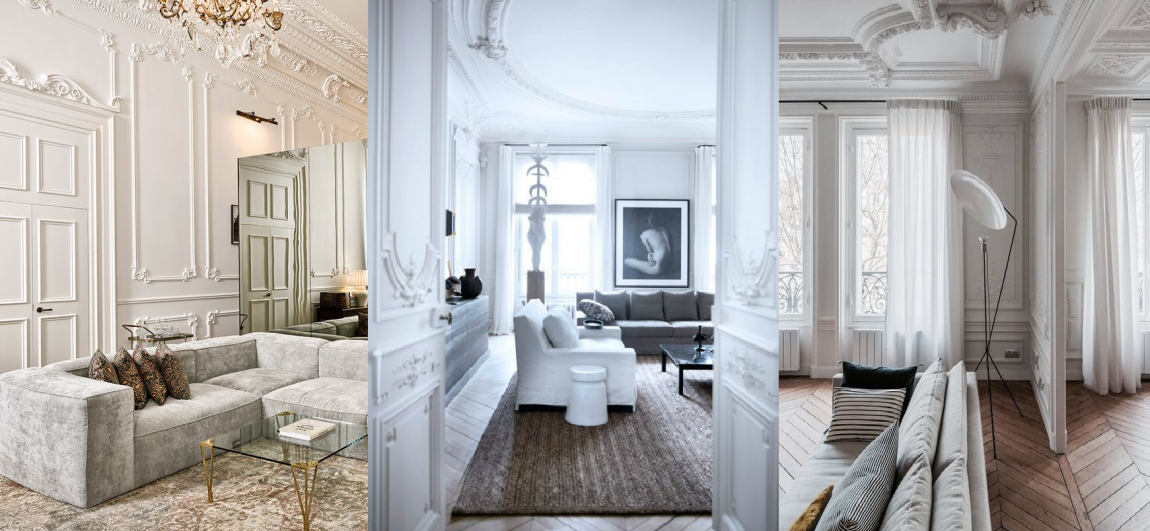 Интерьер, как правило, не перегружен деталями. Традиционный белый фон стен даёт ощущение пространства и позволяет предметам дышать – каждый из них получает достаточно внимания. Таков классический вид парижской квартиры. Обыграть особенности дома, расположить предметы так, чтобы каждый был на виду, и одновременно создать удобное и уютное жилище – в этом и заключается пресловутый «парижский шик».