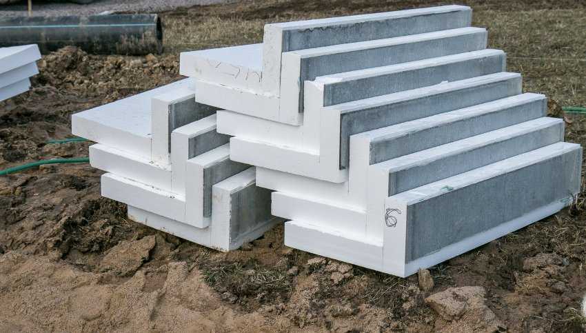 L-блоки облицованы плоским шифером для выкладки фундамента.