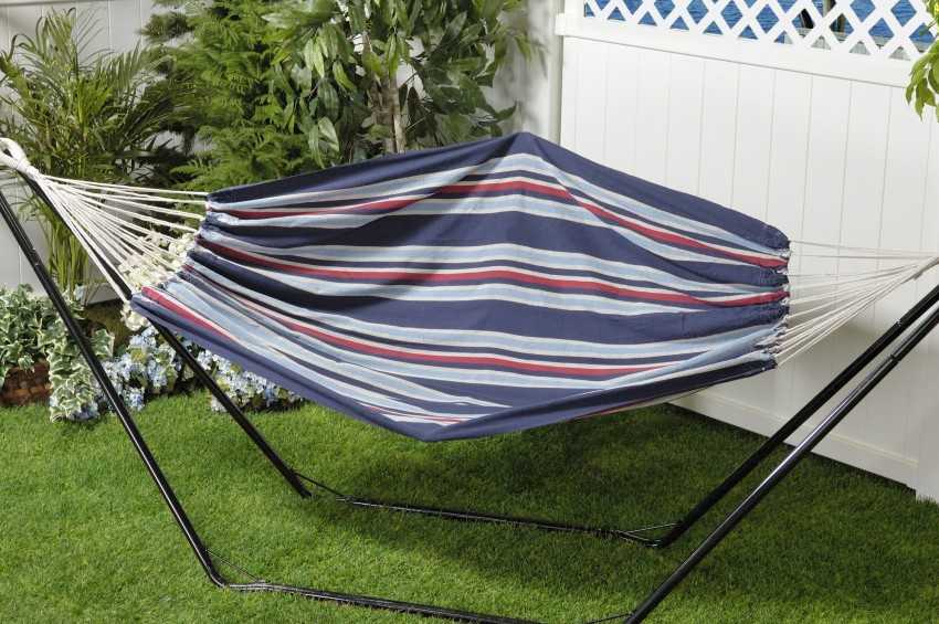Гамак-качалку на металлическом каркасе можно установить в любом месте