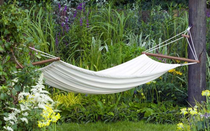 Если на участке нет подходящих деревьев, гамаки можно разместить в беседке