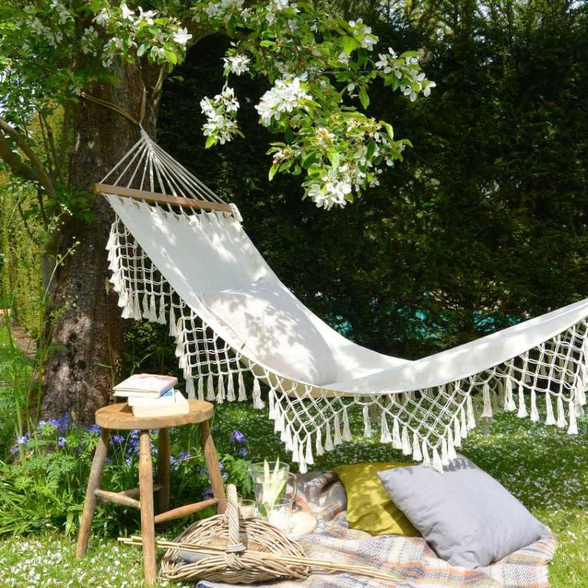 Если у вас нет навыков шитья, но вы хорошо владеете техникой плетения, прекрасным выбором станет изготовление гамака по технике макраме. Как сплести гамак из натуральной или синтетической веревки мы рассмотрим позже