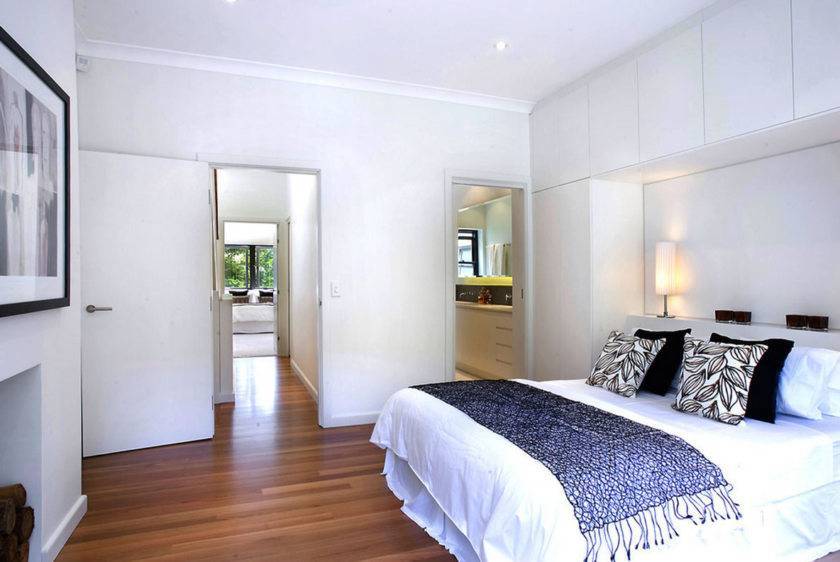 Если спальная квадратной формы, то вокруг изголовья спального места устраивается шкаф, порой шкаф переходит на смежную стену. Угловая гардеробная в спальне позволит задействовать максимально всю свободную площадь.