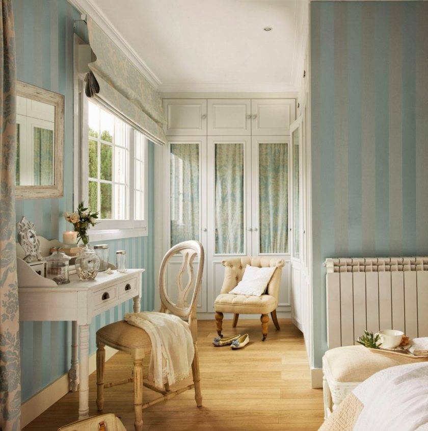 Гардеробная – то место, которое стилистически должно перекликаться с комнатой, рядом с которой она находится, к примеру, со спальней.