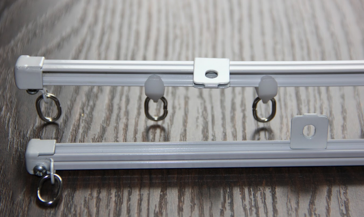 Присутствие сразу 3 рядов с пластиковыми крючками позволяет использовать не только легкую занавеску из тюля, но и тяжеловесные портьеры, ламбрекены из плотных тканей. Либо можно прикрепить портьеры внахлест на две соседние дорожки.