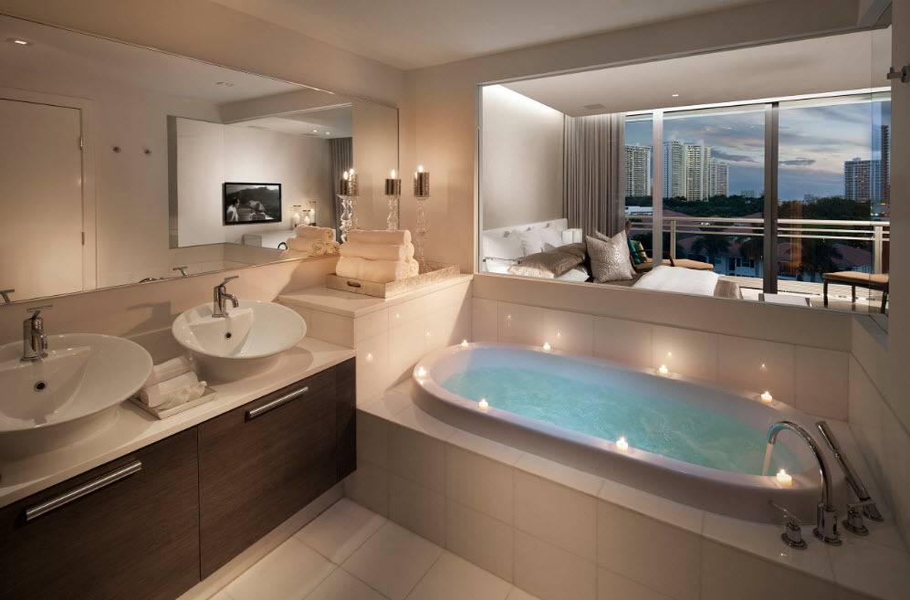 Стальная гидромассажная ванна в интерьере